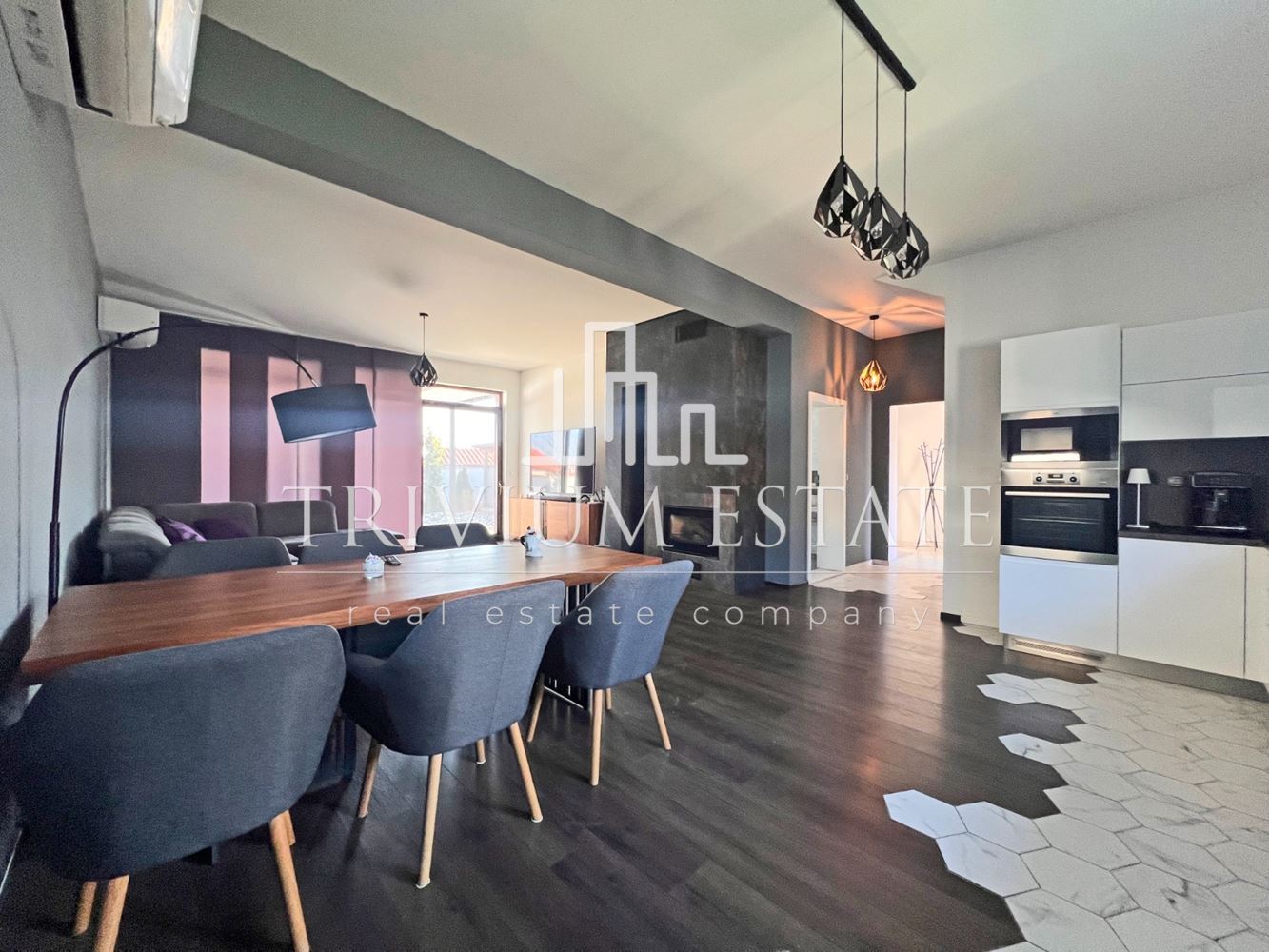 Агенция TRIVIUM ESTATE предлага под наем модерна самостоятелна къща с просторен двор и веранда, разположена в предпочитания квартал Коматево.