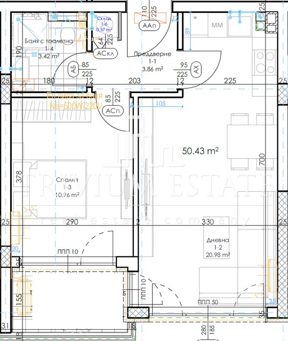 Имотът е с обща площ от 60 кв.м и се състои от: