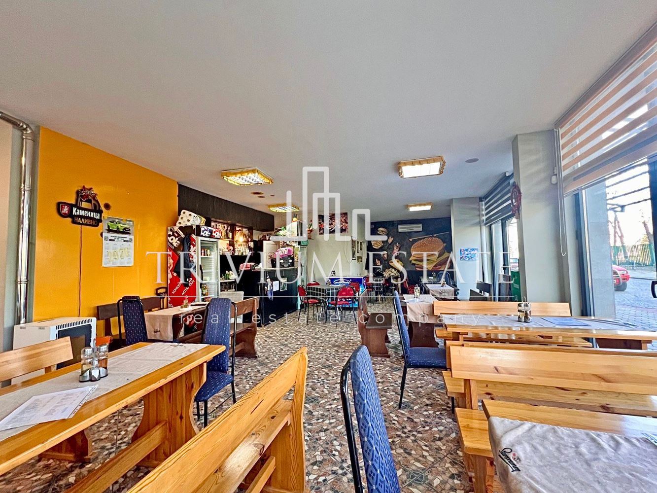 ✓ Пълно обзавеждане на клиентската част – маси, пейки и др.