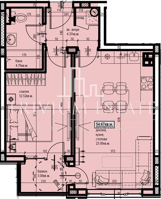 TRIVIUM ESTATE има удоволствието да Ви предложим за продажба Двустаен апартамент в луксозен жилищен комплекс от висок клас в кв.Остромила..