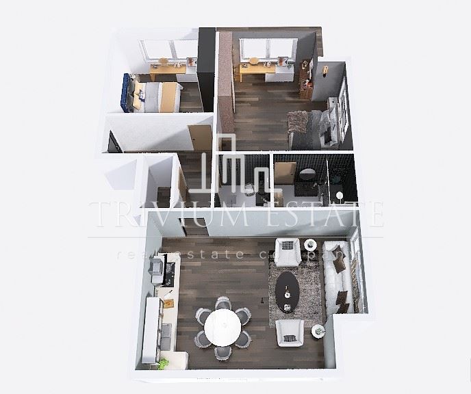 Агенция Trivium Estate предлага тристаен апартамент с веранда и личен двор, разположен в непосредствена близост до голям парк – отлична локация за спокоен и уединен начин на живот.