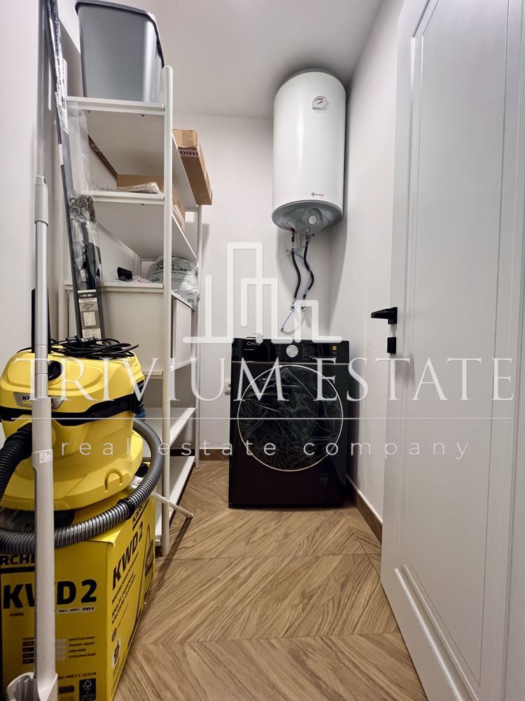 Апартаментът е напълно обзаведен и оборудван с висок клас електроуреди. Интериорът е съвременен, с внимание към детайла и удобството. Жилището е готово за нанасяне.